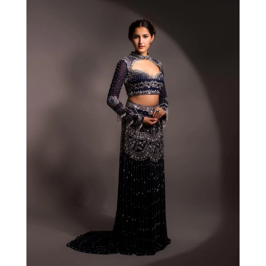 Straight out of Nepal Fashion week, our modern and trendy Mariposa Lehenga Set